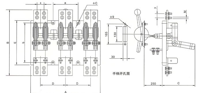 刀開關(guān)的導(dǎo)電部件,借助玻璃纖維塑料壓制成的絕緣底板固定于底座上,具有較高的絕緣能力和機(jī)械強(qiáng)度,用玻璃纖維塑料壓制成的拉桿具有較高的機(jī)械強(qiáng)度,從而保證了刀開關(guān)的機(jī)械壽命。