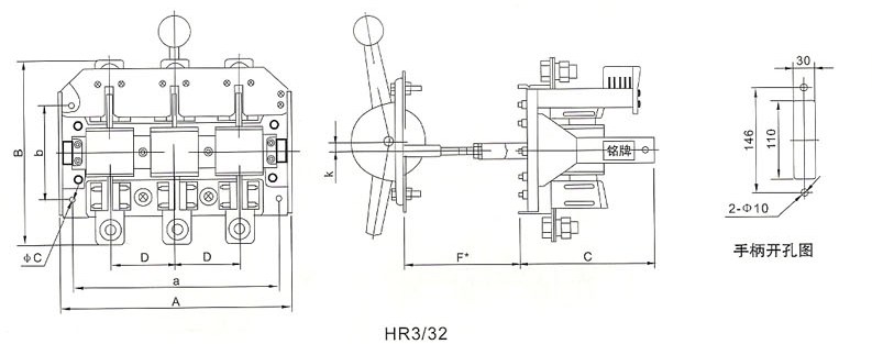 HR3系列熔斷器式刀開關(guān)適用于交流50Hz、400V,額定電流至1000A的配電系列中作為短路保護(hù)和電纜、導(dǎo)線的過載保護(hù)之用。在正常情況下,可供不頻繁的手動(dòng)接通和分?jǐn)嗾X?fù)載電流與過載電流,在短路情況下,由熔體熔斷來切斷電流。