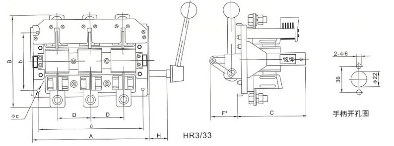 1.HR3熔斷器式刀開關(guān)是熔斷器和刀開關(guān)的組合電器,具有熔斷器和刀開關(guān)的基本性能,在電路正常供電的情況下,接通和切斷電源由刀開關(guān)來擔(dān)任。當(dāng)線路或用電設(shè)備過載或短路時(shí),熔斷器的熔體燒斷,及時(shí)切斷故障電流。前操作前檢修的開關(guān),中央有供檢修和更換熔斷器的門,主要供BDL配電屏上安裝。前操作后檢修的開關(guān)主要供BSL配電屏上安裝。側(cè)面操作前檢修的開關(guān)可以制成封閉的動(dòng)力配電箱。