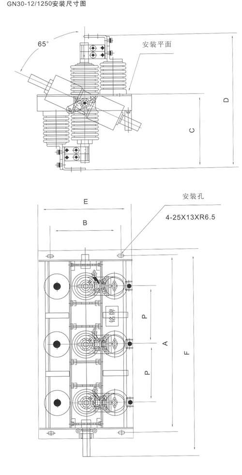 GN30-12型旋轉(zhuǎn)式戶內(nèi)高壓隔離開(kāi)關(guān)是一種旋轉(zhuǎn)觸刀式的新型隔離開(kāi)關(guān),主要結(jié)構(gòu)是在三相共底架的上、下兩個(gè)平面上,固定兩組絕緣子及觸頭,通過(guò)旋轉(zhuǎn)觸刀,從而實(shí)現(xiàn)開(kāi)關(guān)的分合閘。